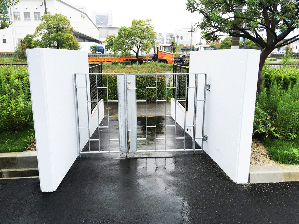 車両ゲートの配置に加え、社員さんが通行する場所に設置するゲートを2つ(大と小)デザインしました。